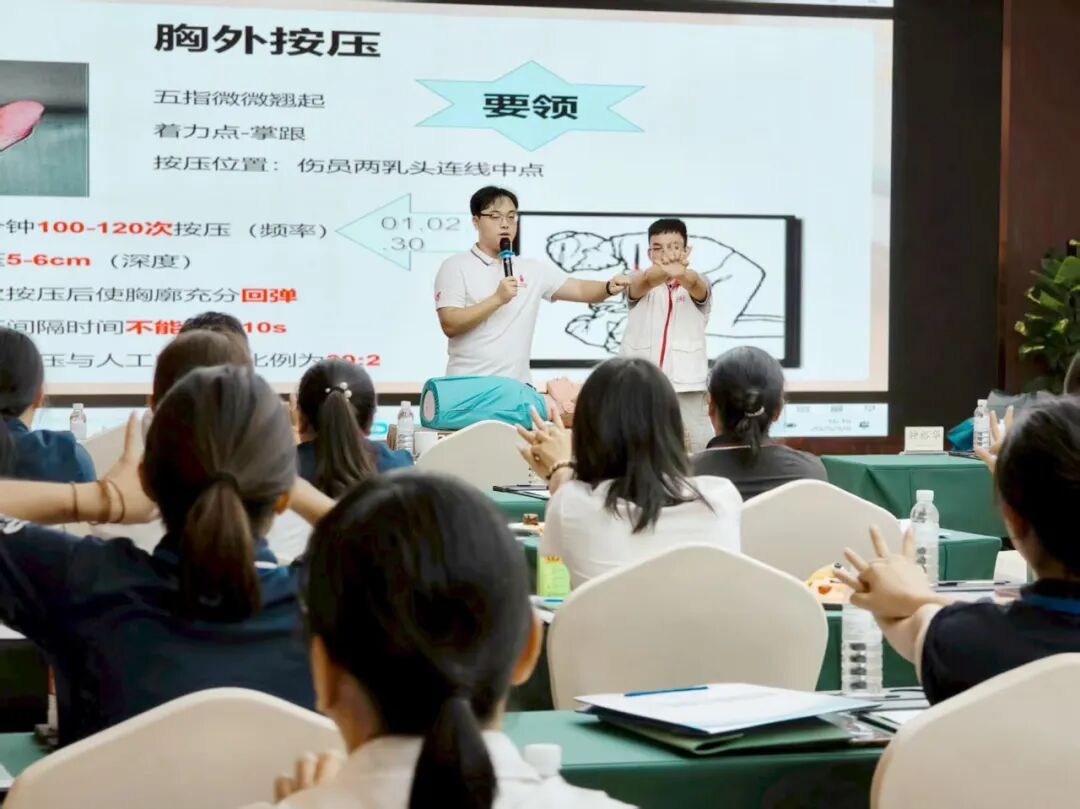 2025年9月8日,广东省一心公益基金会第八服务队走进风景如画的从化区广东温泉宾馆,为从化区温泉协会40名学员带来一场实用的应急救护培训。本次活动以“守护生命,‘救’在身边”为主题,旨在普及急救知识,提升从业人员在突发事件中的自救与互救能力,为生命安全多添一重保障。