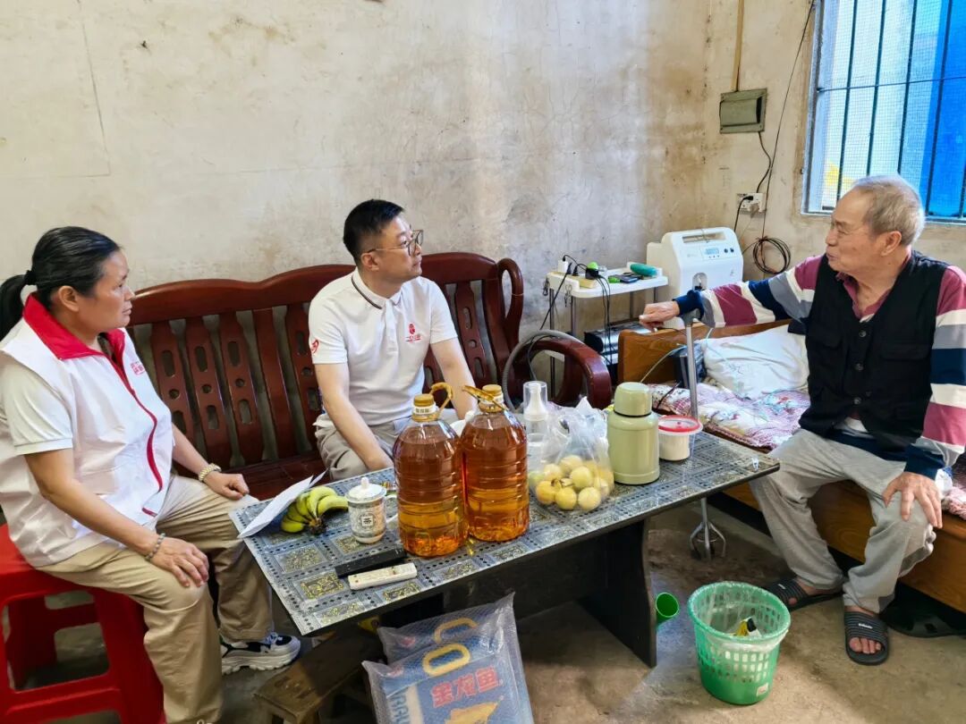 走访过程中,志愿者细心询问老人们的日常起居,鼓励他们保持乐观心态。老人们用客家话连连道谢,现场气氛温馨,充满欢声笑语。