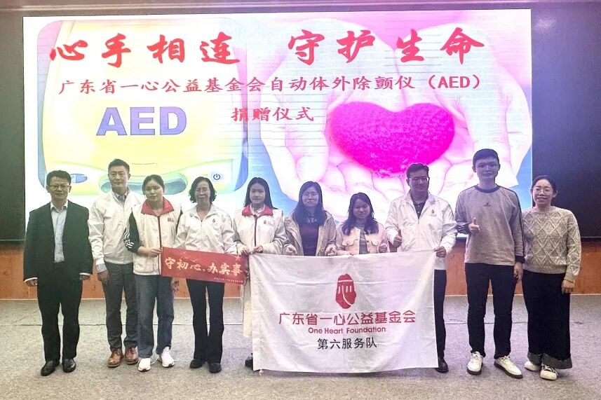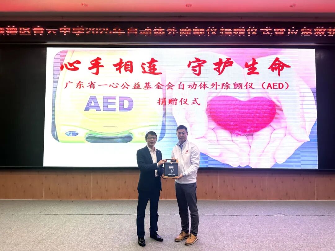 2025年11月4日下午,广东省一心公益基金会第六服务队在顺德青云中学开展应急救护培训,并向学校捐赠了一台自动体外除颤器(AED),为校园安全增添了一份实实在在的保障。