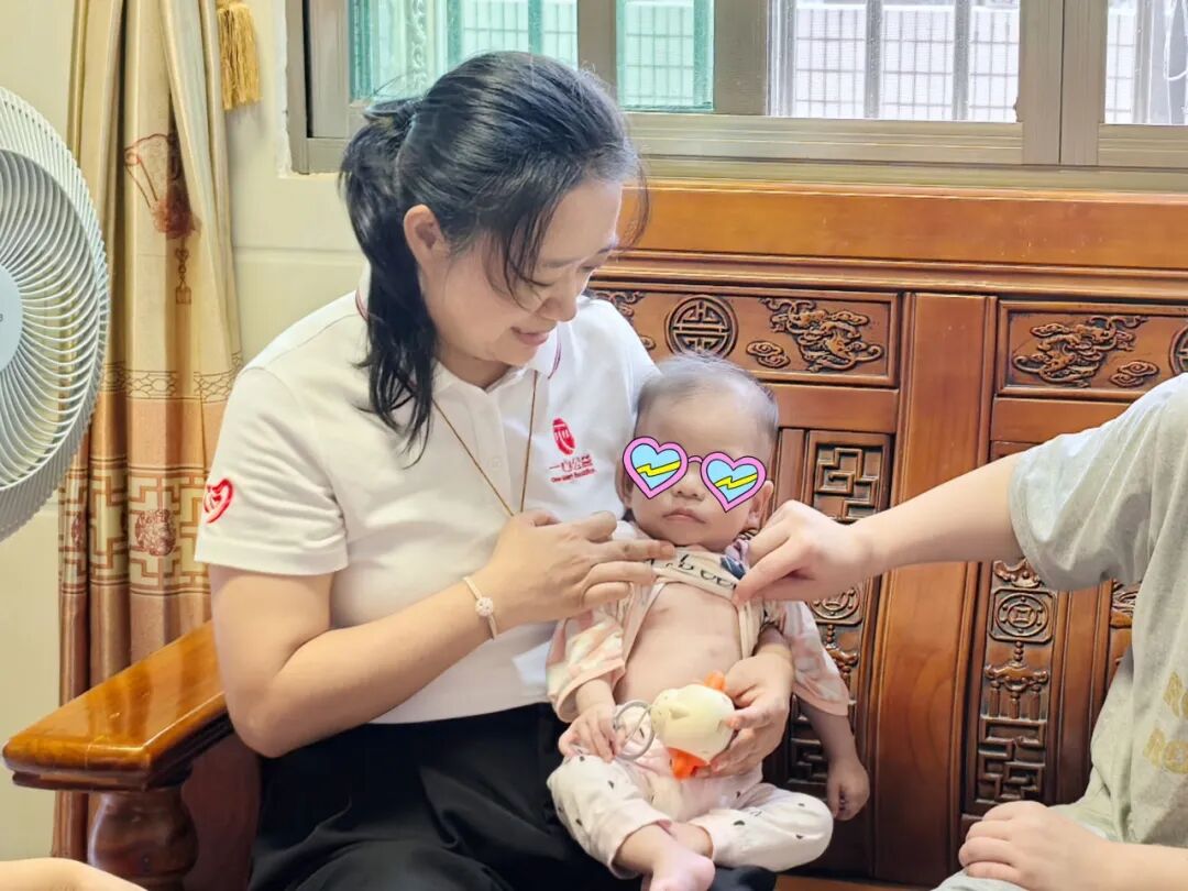 即将满周岁的小浩,于今年5月在广东省妇幼保健院顺利完成了心脏手术。小浩一家四代同堂,爷爷和爸爸在家附近经营小卖部,家庭氛围温馨。小浩奶奶表示,家人十分重视医生的嘱咐,会坚持带小浩定期复查。96岁的太奶奶见到队员们非常开心,拉着大家的手连连道谢。