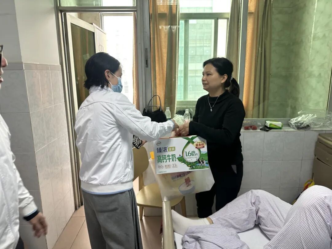 探访过程中,志愿者鼓励家属保持乐观,并送上了慰问品。活动结束后,服务队队员将向理事会详细汇报患者情况,并由理事会决议合适的帮扶方案。祝愿小怡早日康复!