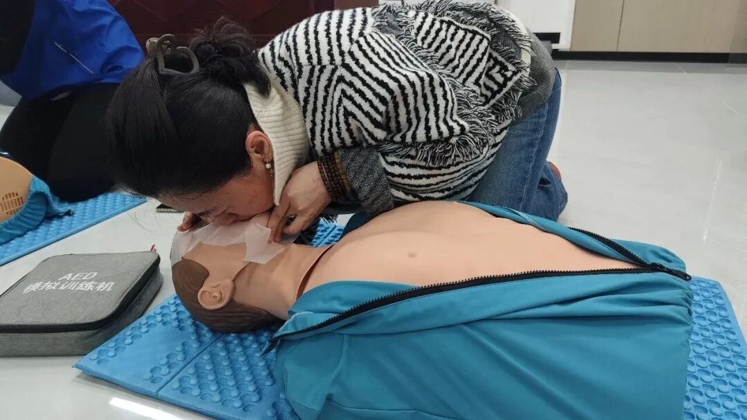 培训中,讲师紧密结合校园生活实际,采用“理论讲解+实操演练”的模式,系统传授了CPR操作流程、AED使用要领以及气道异物梗阻急救法。讲师利用模拟人进行细致拆解与示范,从胸外按压的深度频率到人工呼吸的手法要点,逐一清晰讲解。参训人员轮番进行实操练习,讲师全程紧盯,一对一纠正动作,手把手指导技巧,确保了人人学得懂、练得会。