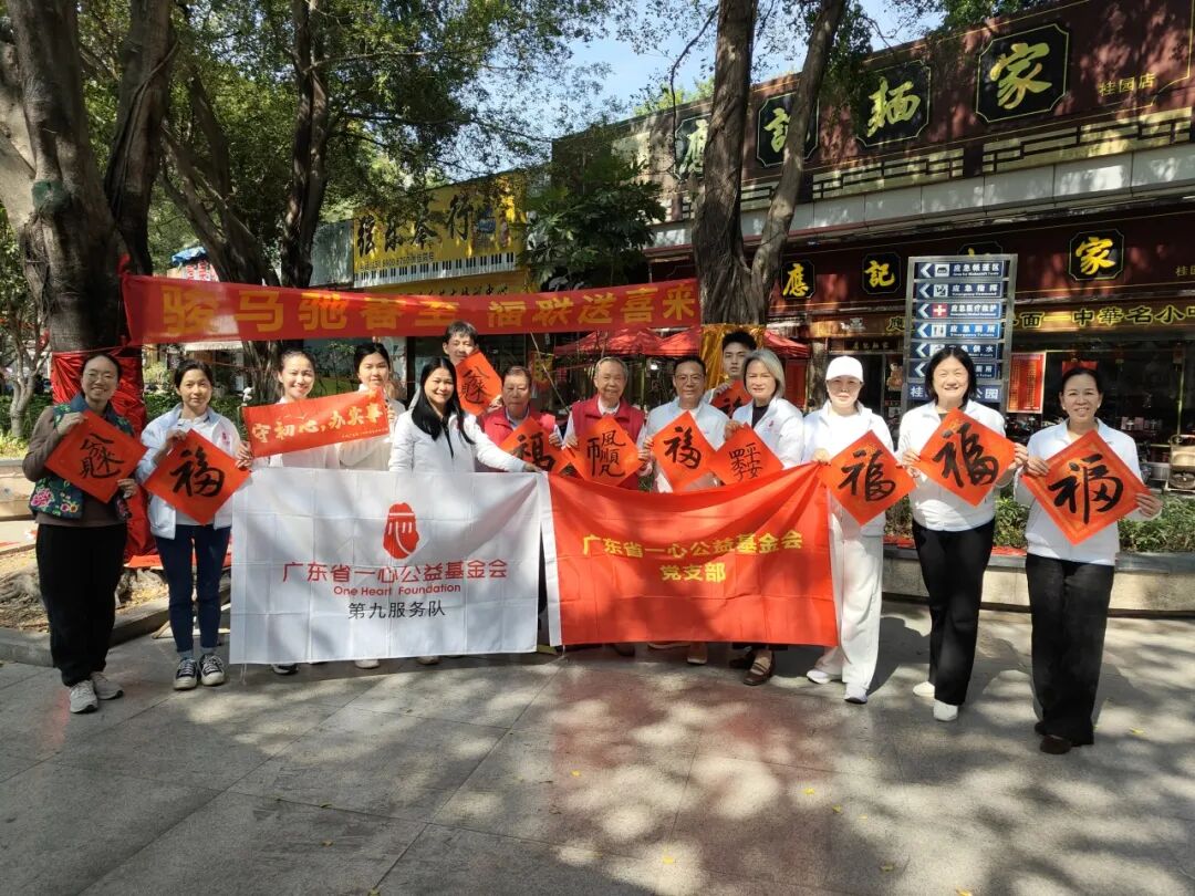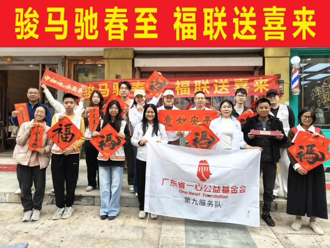 新春将至,年味愈浓。为传递节日祝福,让社区居民感受浓浓年味与社会温情,2026年2月6日、10日,广东省一心公益基金会第九服务队先后走进佛山市禅城区桂园社区、顺德区乐从社区,开展“骏马驰春至,福联送喜来”迎春送福公益活动,以笔墨寄情,将一副副承载祝福的春联和“福”字送到居民手中,让墨香与暖意萦绕邻里之间。