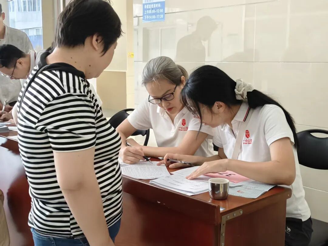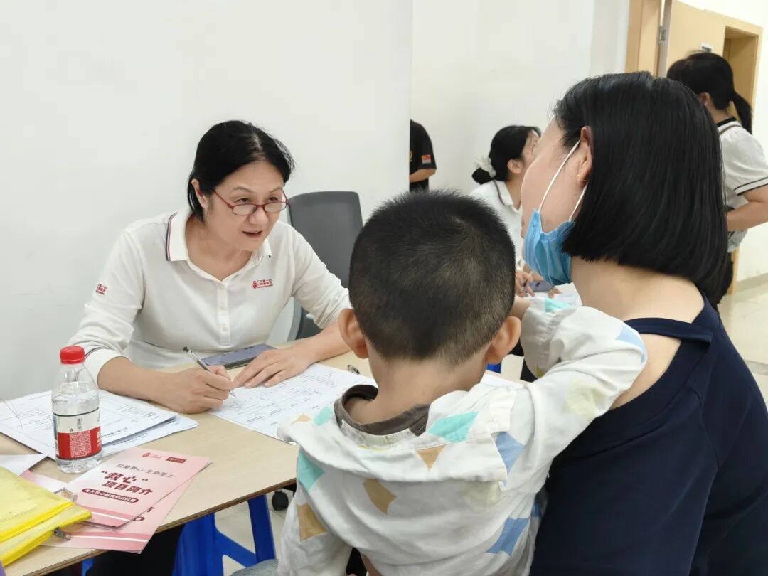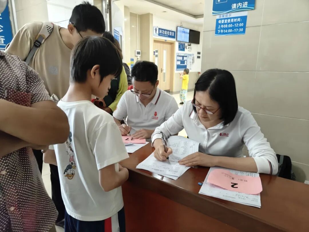 义诊现场秩序井然。志愿者们分工明确,从路线指引、信息登记到协助检查、安抚患儿,每个环节衔接顺畅。面对紧张哭闹的孩子,医护人员与志愿者轻声安抚、耐心引导;对有手术指征的困境家庭,队员们详细了解家庭状况,讲解救助政策与申请流程。