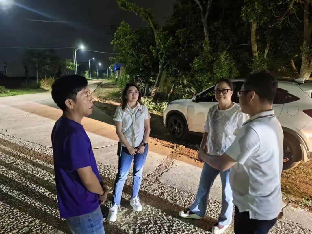 此外,4月20日晚,第九服务队队员还前往坡头镇民有村民委员会,开展实地走访勘察,对路灯安装的实际需求进行细致评估。经走访了解,申请安装路灯的路段是连接该村委会与周边8个自然村的主要路段,紧邻农田,村中常住人口多为老人小孩,夜间缺乏照明,出行存在安全隐患。后续,服务队将把调研情况如实呈报理事会,由理事会研究确定具体帮扶方案。