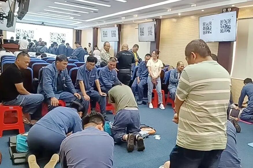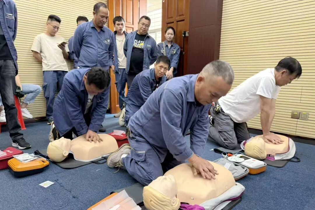 本次培训采用“理论讲解+实操演练”相结合的形式,围绕成人心肺复苏术、胸外按压技巧和AED使用等核心内容展开。