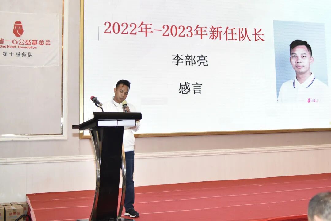 最后,基金会理事长谢东祥发表总结讲话,他对服务队队员的无私奉献以及不断进步予以肯定,希望各位队员不忘走进公益道路的初心,并持之以恒。同时,他祝愿第十服务队在新一届领导班子的带领下继往开来,把志愿服务做得更精、更好!