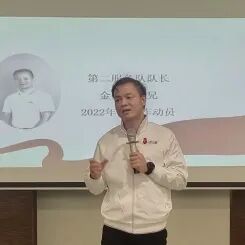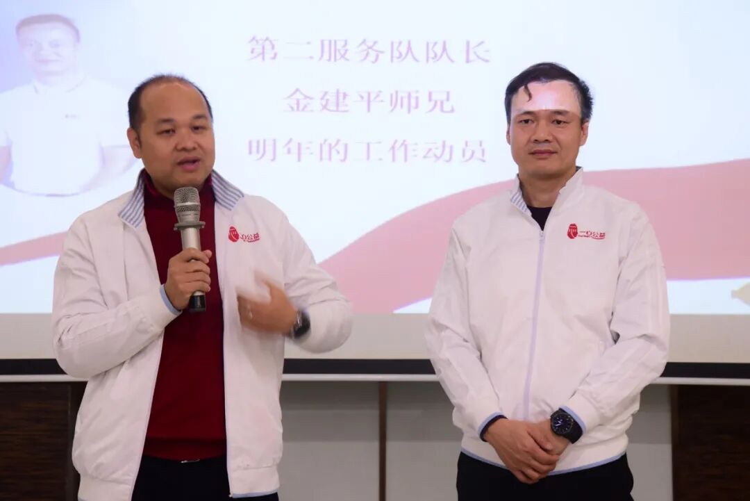 大会尾声,服务队队长金建平师兄与罗中央师兄上台做服务队慈善盛会动员发言,鼓励队员积极参与到本次盛会的筹备工作中,为盛会的圆满举办共同努力。