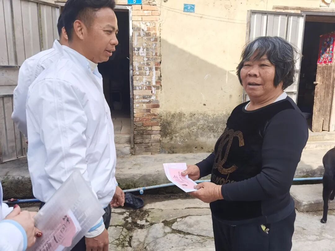 南叔妻子说,南叔平时在家里老是把地砖撬坏,所以家里的地砖基本上没有完好的。志愿者向南叔妻子送上慰问金,祝福她节日快乐。