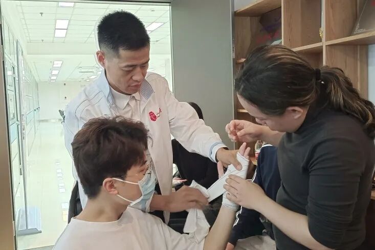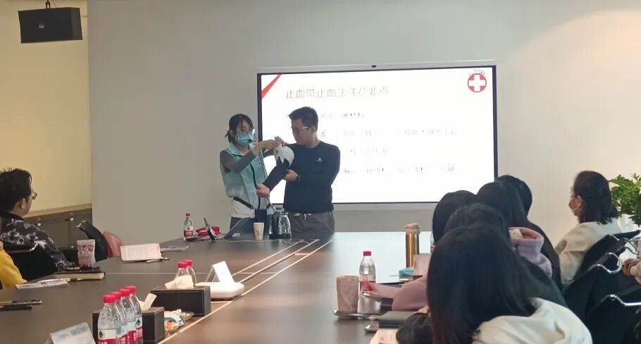 本次培训主要围绕心肺复苏、异物卡喉以及外伤止血等主题开展教学与实操。首先,讲师讲解了外伤止血、伤口包扎等外伤的现场急救处理方法,以及如何运用海姆立克急救法处理异物卡喉。随后,讲师介绍了我国心源性猝死的情况,以及心肺复苏在急救中的重要性。