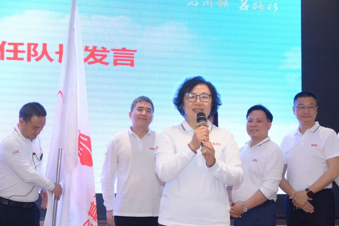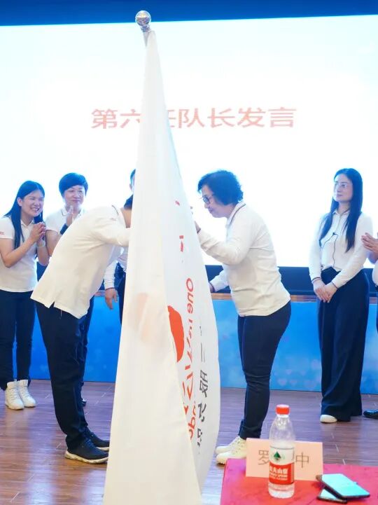 在全场人员的殷切期盼下,即将卸任的队长罗定中师兄将队旗移交给新一届候任队长麦卫红,交接仪式圆满完成。麦卫红师姐代表候任领导班子发言,她表示,接上服务队队旗时,她感受到沉甸甸的使命与责任,在未来两年里,她将不忘初心,全心全意地带领服务队攀向新的高峰!
