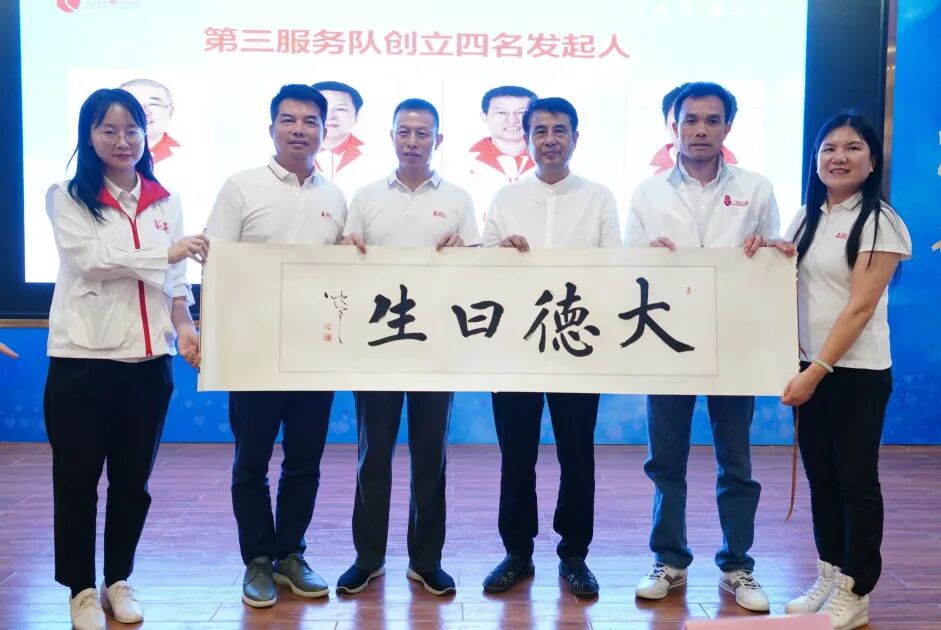 接着,参会人员通过短片回顾了第三服务队在公益路上十一载的风雨兼程,从一颗幼小的树苗逐渐成长为一颗茁壮的大树,从最初四名发起人许练、伍景伟、叶永生、刘廷武,发展至今已有60多名队员及无数志愿者的团队。饮水不忘思源,为了向四名发起人表达郑重感谢,服务队向他们送出了四幅精美的书法作品。