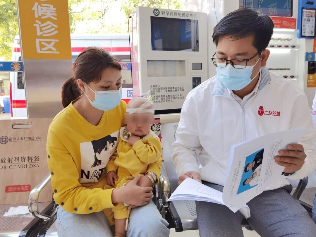 近日,广东省一心公益基金会第十服务队队员前往广州市增城区妇幼保健院,探访困境家庭先心病患儿小语,了解其病情及家庭经济情况。