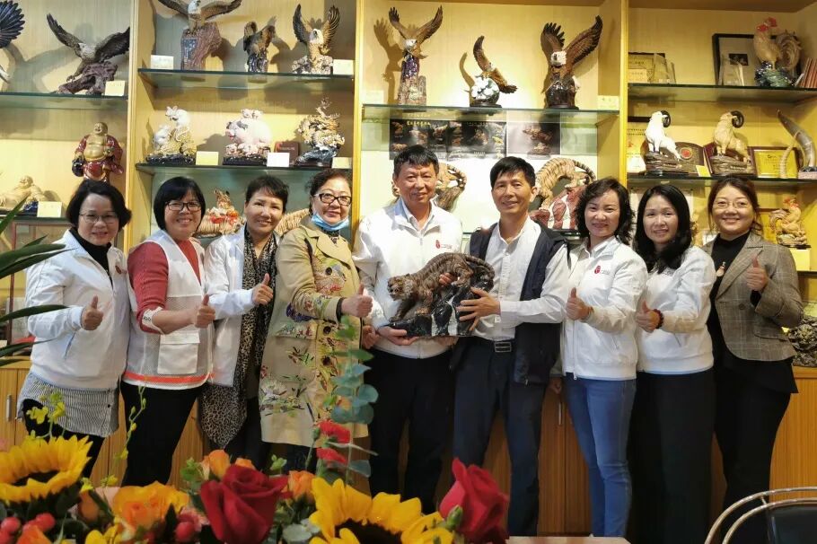 在慈善盛会上,霍冠华先生捐出艺术作品“猪笼入水”,拍得3.6万元的善款。拜访活动当天,霍冠华先生特意向第九服务队捐献艺术作品“虎虎生威”,希望可以筹得善款,帮助更多的先心病孩子,同时祝福第九服务队队员在公益服务工作中再创佳绩。