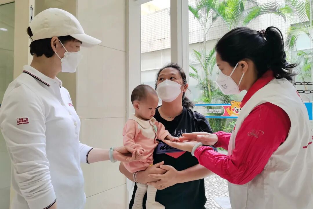 在广州市妇女儿童医疗中心,队员们见到了患儿小洁和小洁妈妈。小洁来自广西恭城,刚满1岁。在小洁确诊患有先心病后,妈妈通过老乡介绍,带小洁来到妇儿中心求医。
