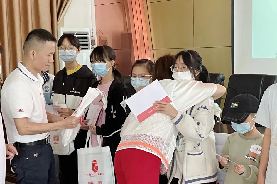淋过雨的人,才更懂得为他人撑伞,经历过苦难的他们,更懂得要把爱传递出去,回馈社会。同学们的愿望真切动人,让在场的志愿者们为之动容,志愿者拥抱着他们,感动落泪。