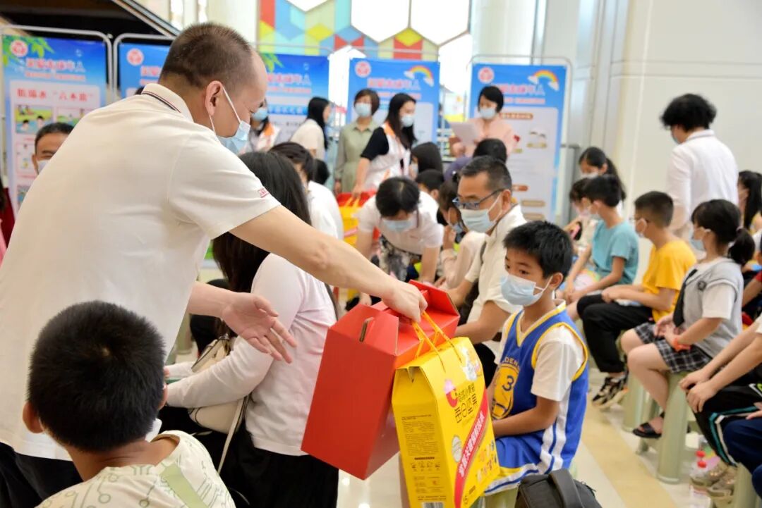 肇庆市妇联与第三服务队的“爱心父母”为现场的困境儿童送上“六一”慰问品。收到礼物的孩子们都很开心,纷纷向志愿者们致谢。