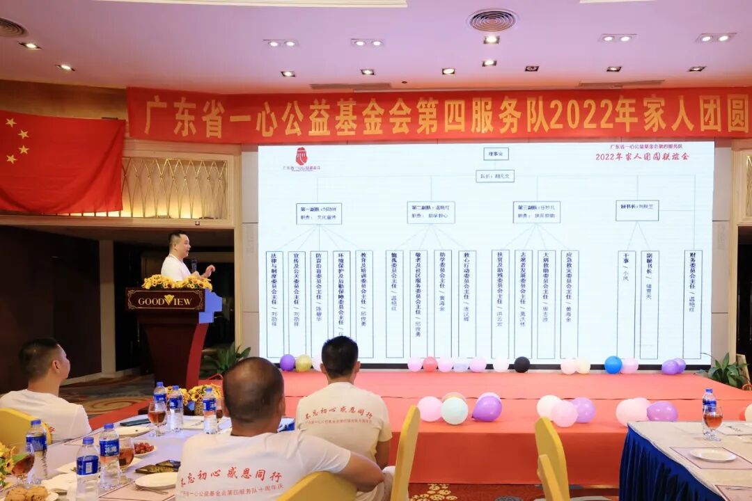 2022年6月25日,广东省一心公益基金会第四服务队在东莞市樟木头镇召开第四服务队2022年家人团圆联谊会。第四服务队队员、志愿者及嘉宾共计87人出席了会议。