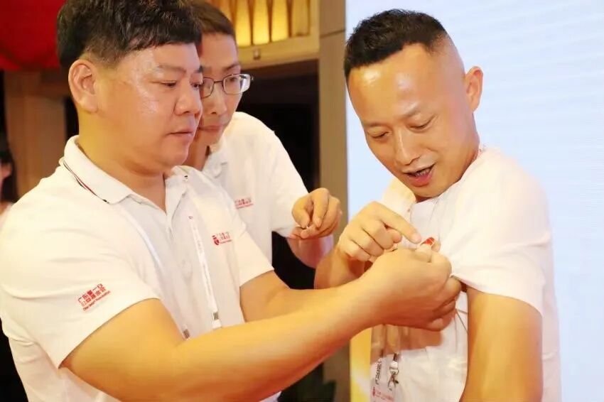 由莫沃林师兄领读入队承诺,在队长胡元文师兄的见证下,7名队员进行了入队承诺,队长为7名队员佩戴了一心公益徽章。