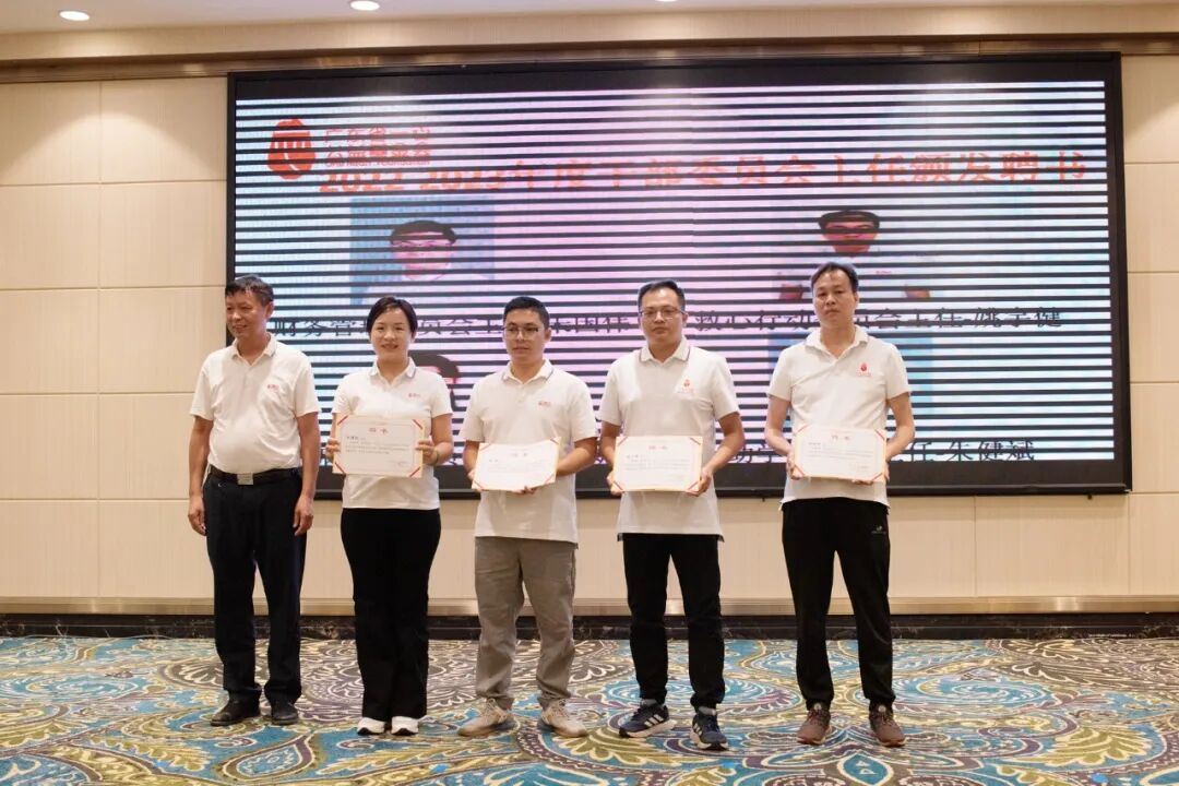 李部亮师兄发言,他表示作为新一届队长感到非常荣幸,也深感责任重大。未来将继续做好各项志愿服务工作,与队员们一起为公益慈善事业贡献一份力量。随后,队长李部亮上台为新一届服务队干部颁发当选证书。