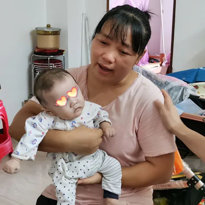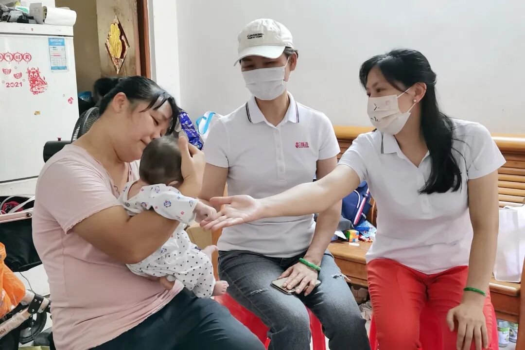志愿者们到达小宇位于广州市白云区的家中,小宇的爸妈热情地欢迎大家。小宇7个多月大,受到先心病的影响,看上去比同龄的孩子瘦小。