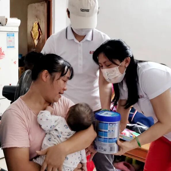 本次回访活动中,队员们亲切关怀小宇的术后康复情况,并向家属送上了奶粉作为慰问品。