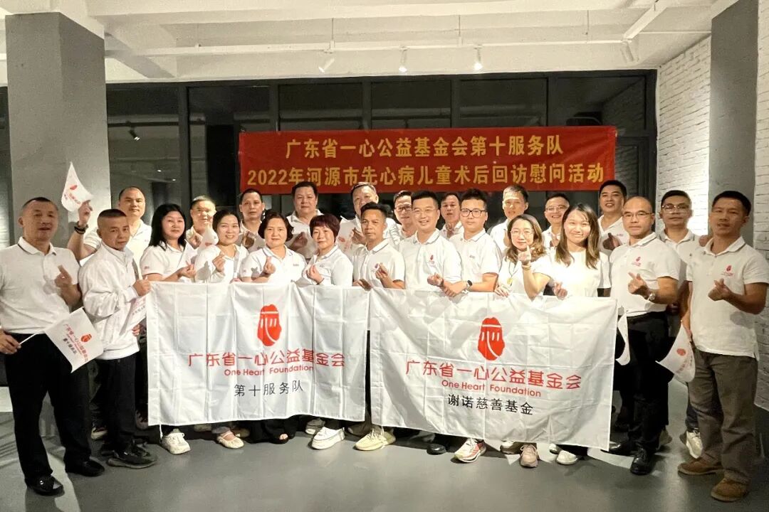 2022年10月22日,广东省一心公益基金会第十服务队联合谢诺慈善基金开展2022年河源地区困境家庭先心病患儿术后回访活动。