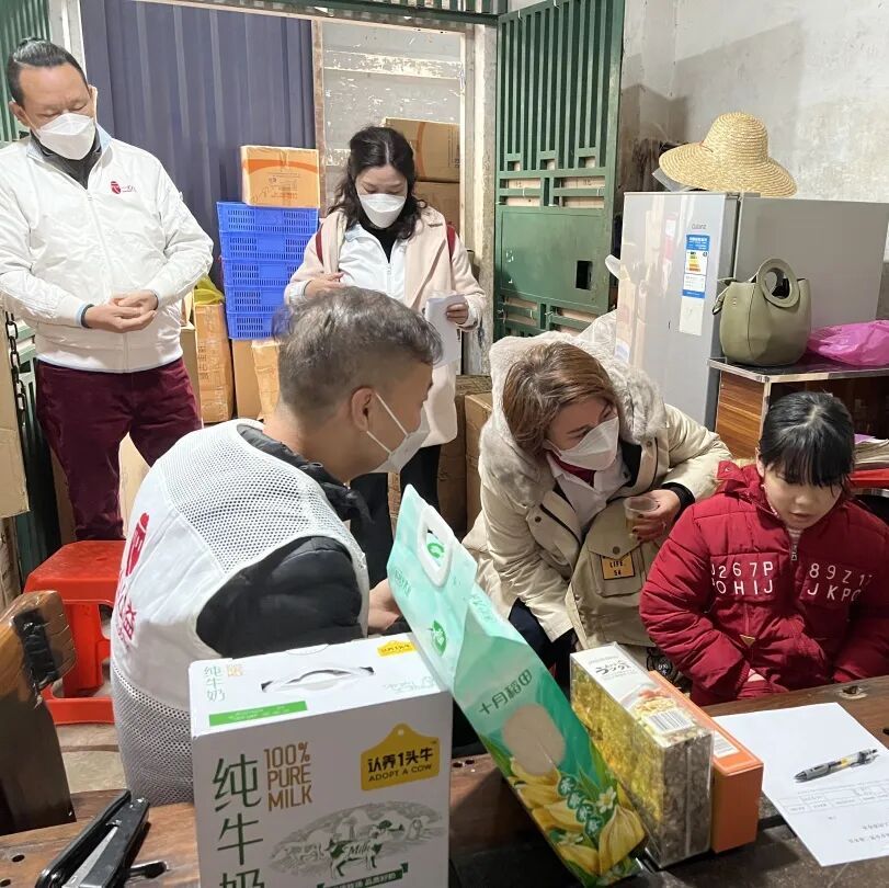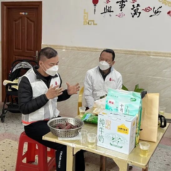 当天早上,队员们早早集合,为了更高效完成入户回访活动,队员们分成了两个小组,并带上米、牛奶等慰问品开展回访活动。