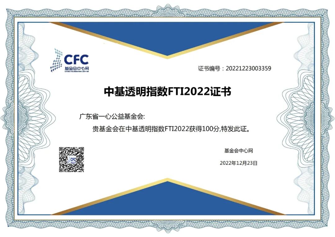 近日,中基透明指数FTI2022发布,CFC恩玖中心公布了中基透明指数FTI2022满分的基金会名单。广东省一心公益基金会再次以满分100分的成绩上榜,连续五年获最高评级A+。