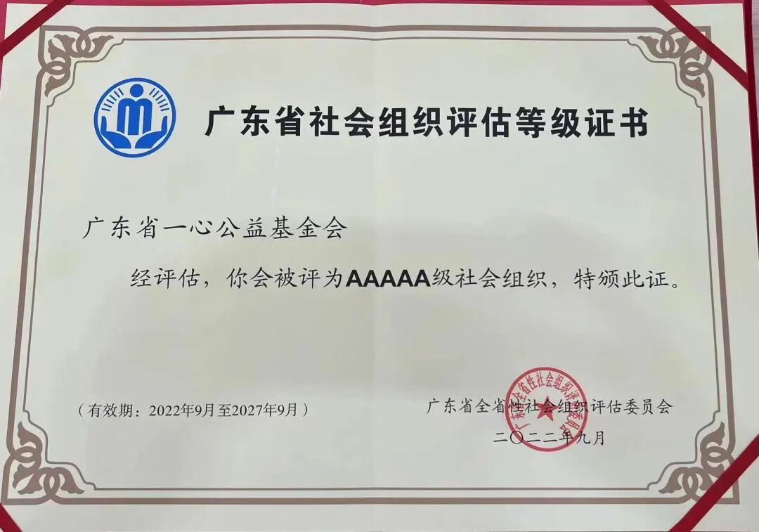 广东省一心公益基金会在2017年首次获评AAAAA级社会组织,2022年第二次获评。这是对基金会持续高效、规范的内部治理以及积极推动公益事业发展的最大肯定。