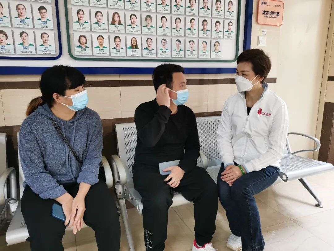 在省妇幼,探访队员见到了患儿的家人张妈妈,看到张妈妈行动不便,队员马上请张妈妈坐下。一问得知,探访当天是张妈妈产后第8天。