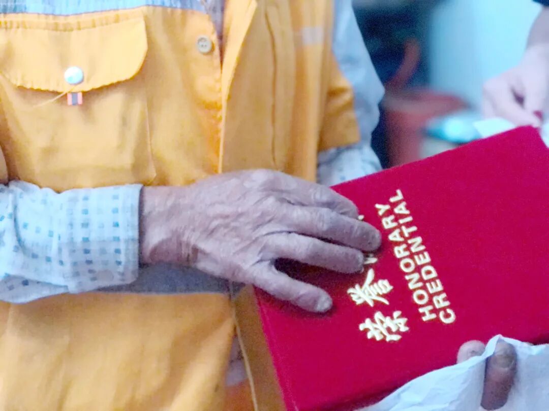 爷爷与大家分享了他获得的荣誉证书,打开一看“东莞市最美环卫工人”。爷爷说,去年他还上了电视,得到了表彰,他很开心,虽是环卫工人,但这是靠自己努力获得的荣誉。他希望把5个孙子抚养长大,希望他们好好学习,长大能够成为有爱的人。