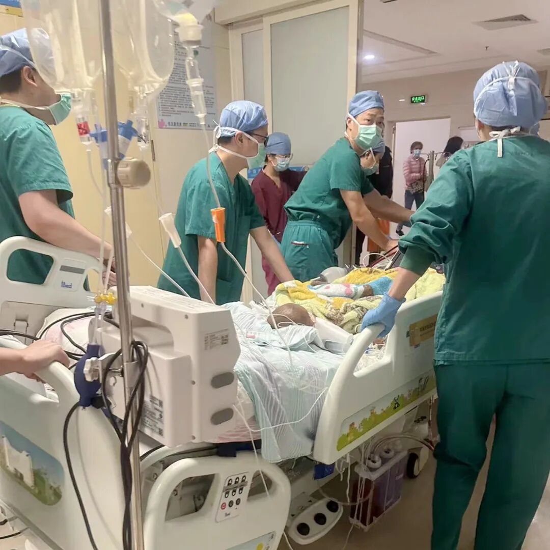 目前,小堃已10个多月大,父母带小堃前往妇儿中心检查,小堃确诊患有肺动脉闭锁、房间隔缺损等复杂性先心病。3月20日,小堃在妇儿中心接受了救治手术,手术后血压和血氧很低,医院采用了人工心肺仪器,小堃术后一直住在ICU。