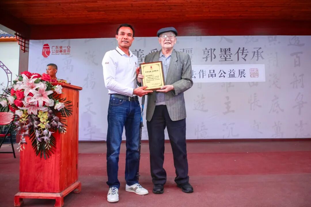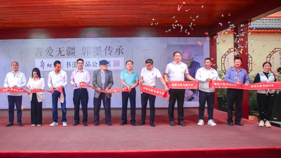 2023年4月26日下午,广东一心公益基金会第二服务队在东莞市茶酒文旅博览园举办了“善爱无疆,郭墨传承”书法作品展开幕式。参加本次开幕式的领导嘉宾有:东莞市高埗镇文联主席叶自朝、东莞市高埗镇文联常务副主席黄镇光、东莞市高埗镇文联副主席兼秘书长李丽霞、广东省一心公益基金会理事长谢东祥、副理事长陈法明、湛沃楠、金建平等领导。同时,郭绍纲先生和夫人高志老师以及广州美院的十五位艺术家也莅临现场参加活动。