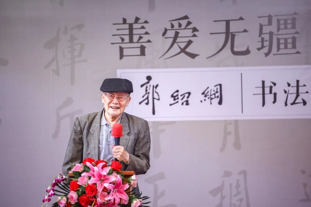 91岁高龄的郭绍纲先生上台致辞,郭老向大家讲述了他对艺术的深刻理解,同时鼓励大家通过此次书法展进一步了解我国的书法艺术,并投身于传承中华优秀传统文化中来。