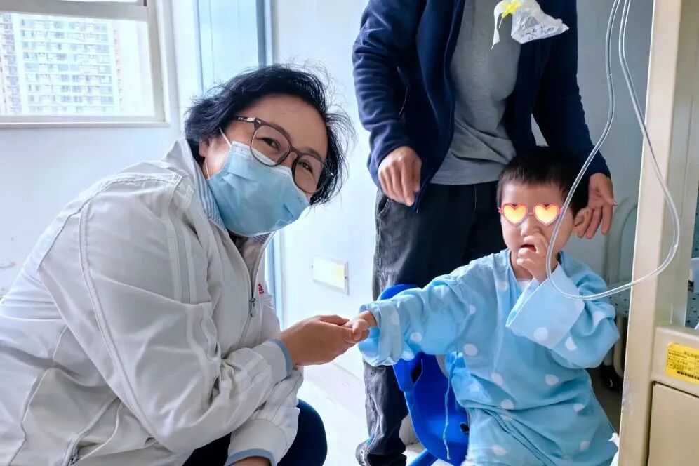 接着,服务队队员来到妇儿中心住院部八楼,见到患儿小英及其爸爸。