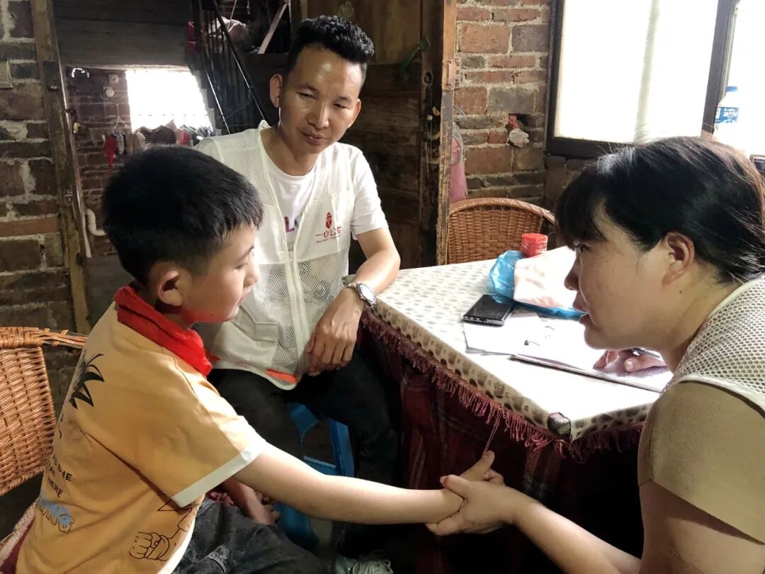 志愿者看着胆怯害羞的小郴,鼓励他努力学习,坚强勇敢,志愿者希望下次见面,能收到他学习进步的好消息。