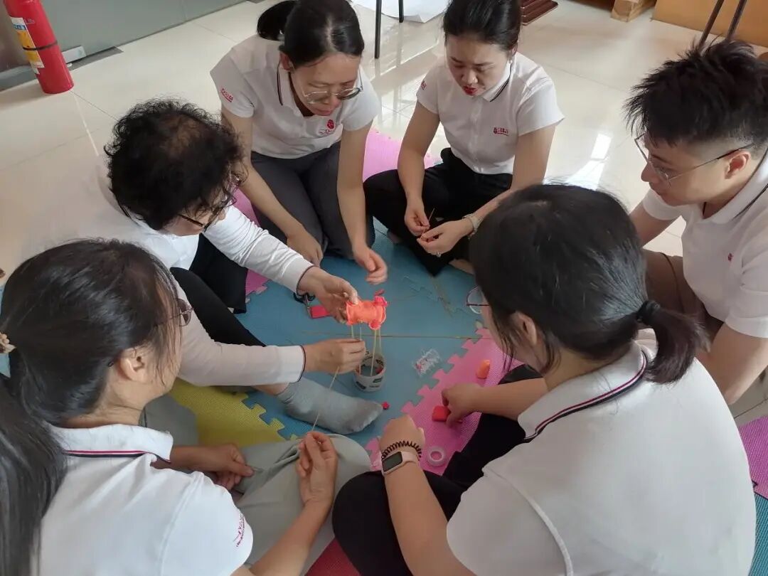 在“背靠背”跟“合力筑塔”环节,以团队力量共同完成一件事情。特别是合力筑塔,大家需要用简单的黏土与意面完成一个筑塔工程,其中一个小组通过东方明珠塔灵感,取得的最优筑塔小队,大家都体会到:只有根基打牢固,上层建筑才可以建得高建得稳,用于服务队管理也是一样。