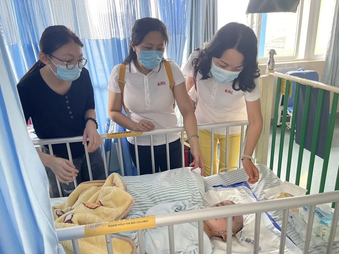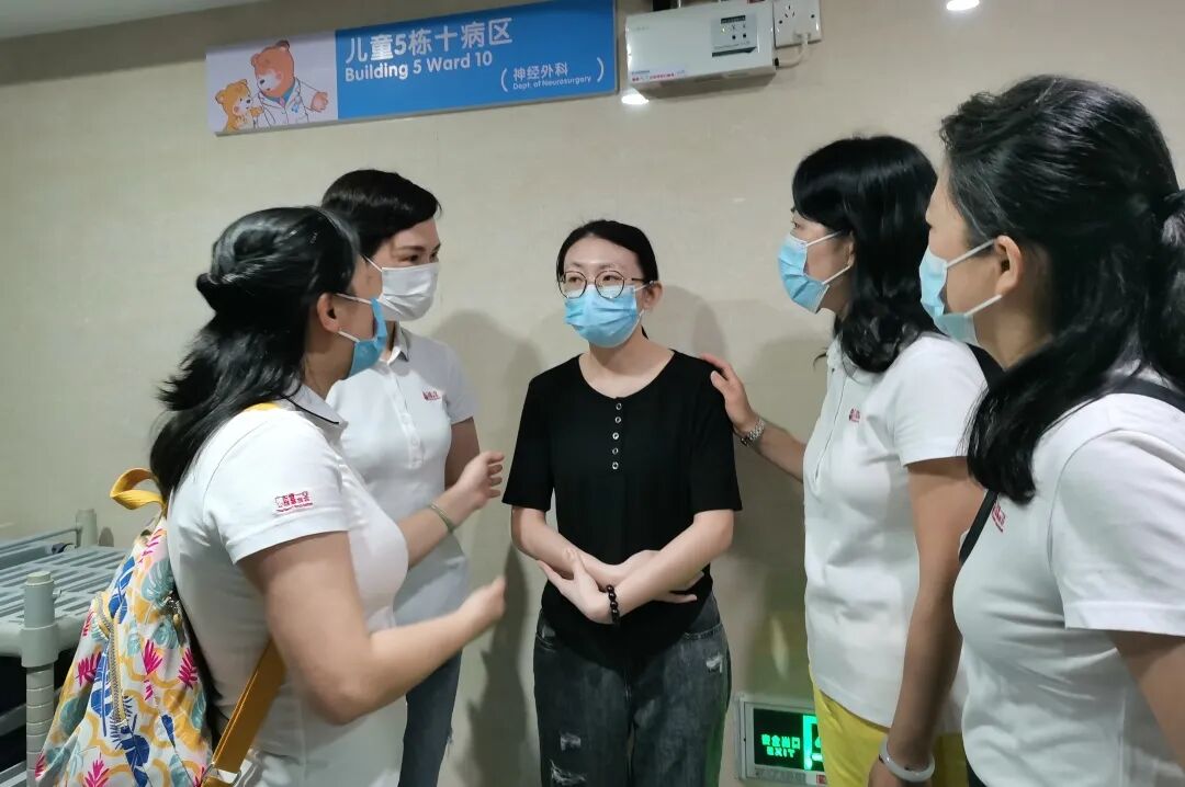 队员们在医院见到了来自普宁的小博和小博妈妈,15个月大的小博刚刚经历完两场救治手术。5月19日,他首先在妇儿中心成功接受了心脏手术。6月1日,他转到儿童医院进行了脑膜炎救治手术。目前,小博术后恢复情况良好。
