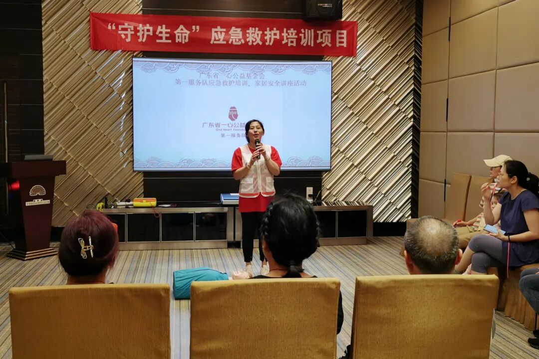 在培训开始前,第一服务队志愿者黄海燕向学员们介绍了广东省一心公益基金会的基本概况和主要公益项目,介绍了“守护生命”应急救护培训项目详情,让大家进一步了解此次培训的目的和意义。
