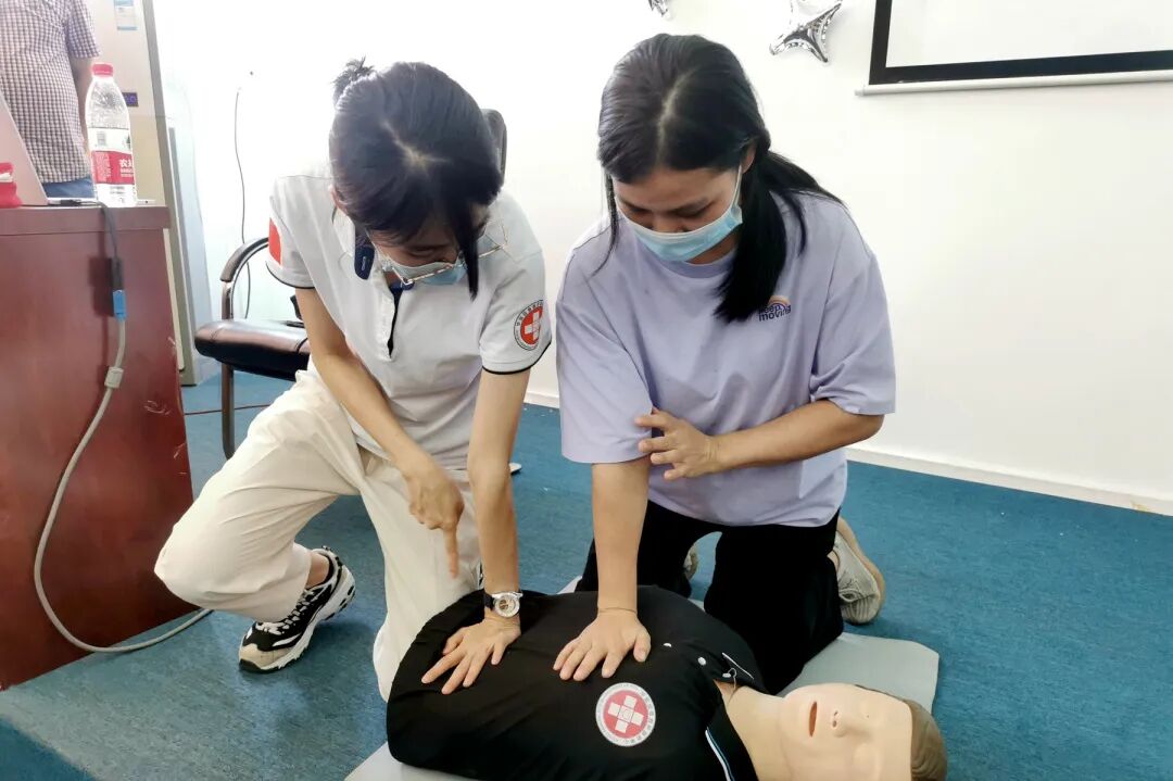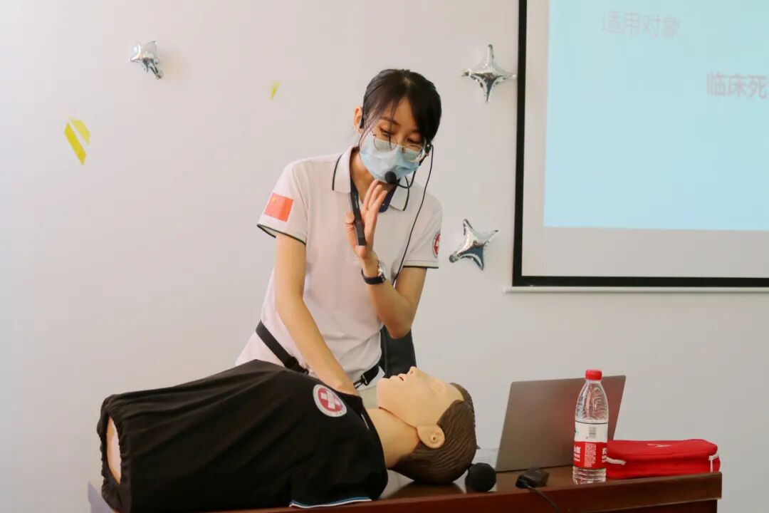 随后,另一位讲师王伟婷重点讲解了心肺复苏的重要性和基本步骤,学员们初步了解了心脏骤停时的紧急处理方法。在实操考核环节,学员们积极上台进行实景演练,在讲师的指导下进行正确操作。通过练习,大家更加深入地了解心肺复苏的技巧和注意事项。