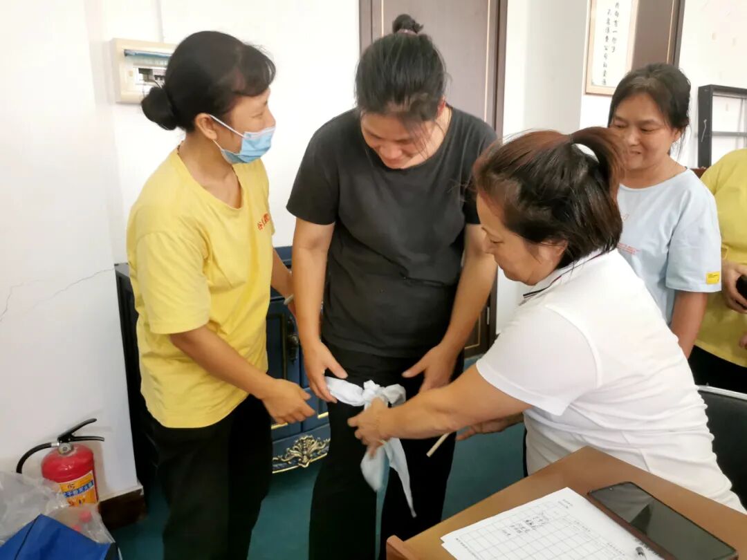 接着,讲师温建军详细介绍了外伤的具体情形,并向学员们展示了正确的止血方法。学员们积极互动,通过练习学会了如何使用纱布、绷带等简单的工具进行包扎,以及针对手部与腿部受伤如何正确施加压力来控制出血,模拟了可能遇到的伤情,通过实际操作提升应对能力。