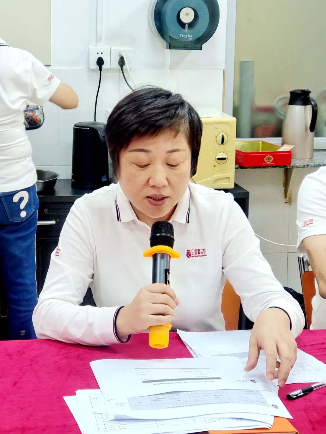 之后,由慈善盛会总指挥麦卫红与各组总监召开了1028慈善盛会工作检视会议,大家围绕着场地组、物资组、拍品组、义工组、嘉宾组、筹款组、宣传组和策划组的工作内容进行讨论交流,确定各组的工作重点和铺排计划。