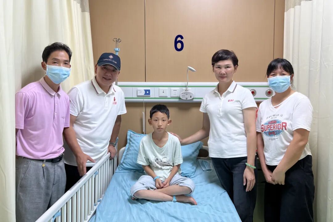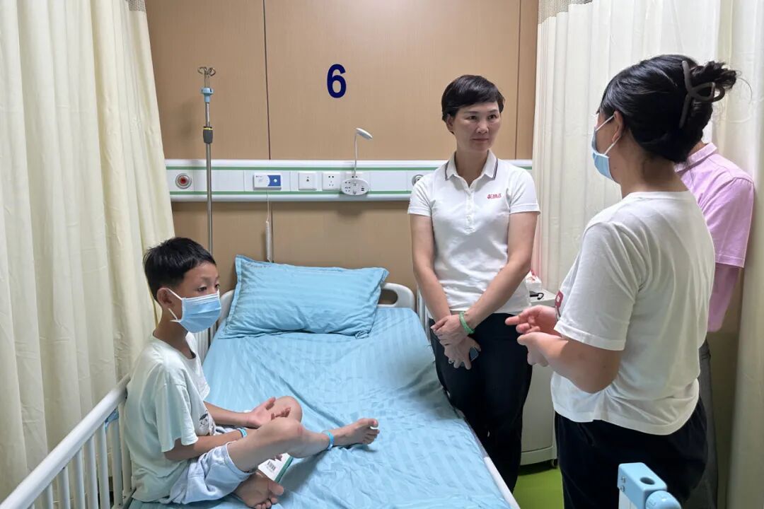 在广东省妇幼保健院,队员们再次见到了小朱同学和他的父母,小朱同学一家人来自梅州。小朱同学今年已经9岁,他出生时确诊患有先心病,曾于2014年参加第一服务队在梅州地区开展的筛查活动,当时小朱同学已经顺利完成心脏手术,队员们也通过探访小朱父母,了解小朱的家庭情况,并对其手术费用资助了3万元。