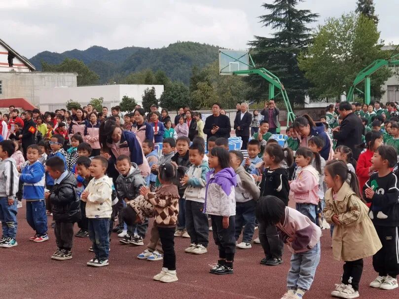 爱心企业家向金坡乡中心幼儿园捐赠了660套园服,金坡乡幼儿园师生表演了《感恩的心》手语舞,向大家表示感谢。