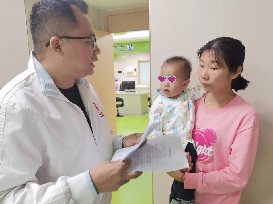 另一位患儿斌斌一家人来自河源市,斌斌11个月大。妈妈怀孕6个月产检时,发现胎儿患有先心病、室间隔缺损。当时,医院预计宝宝出生后会自愈,没想到10月初斌斌病情加重,斌斌于10月19日进行了救治手术,术后情况良好,23日转入普通病房。