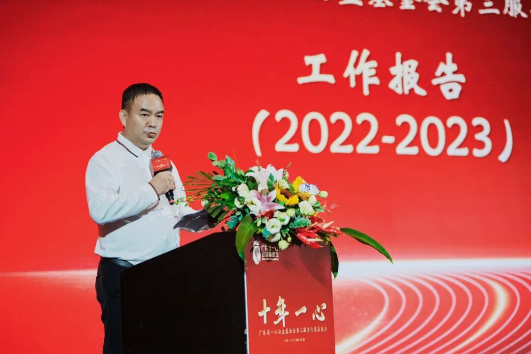 第三服务队副队长陈维政宣布广东省一心公益基金会第三服务队“十年一心”2023年度慈善盛会正式开始!