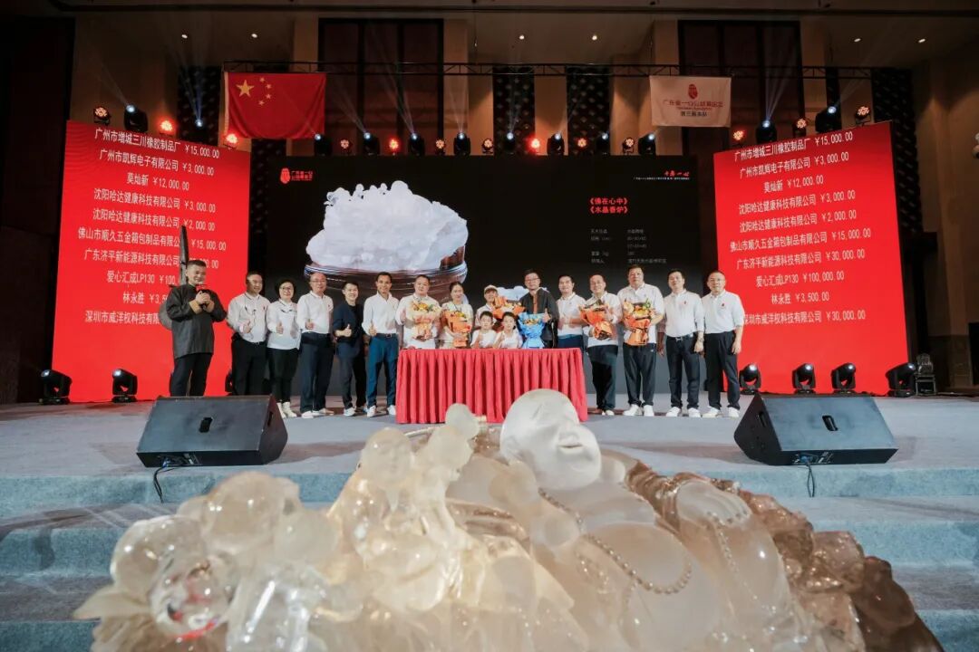 本次盛会上,数十件珍藏艺术品进行了爱心义拍,现场嘉宾踊跃举牌竞拍,善款屡创新高,掌声此起彼伏。其中,一组水晶雕像《佛在心中》《香炉》由多位爱心人士接力竞价,最终该组作品共募得38万元善款,把盛会推向最高潮。