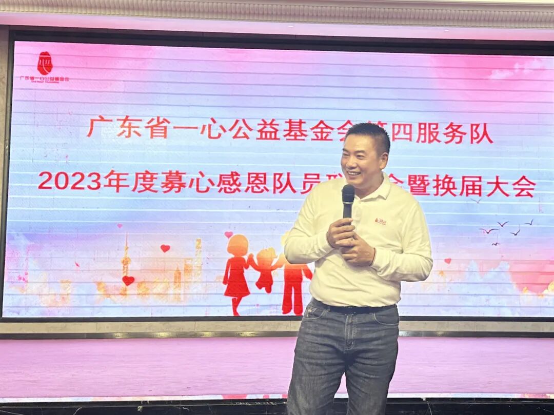 2023年10月29日,广东省一心公益基金会第四服务队在东莞市樟木头镇召开了2023年度募心感恩队员联谊会暨换届大会,基金会副理事长湛沃楠、基金会理事麦卫红、郭燕英、李部亮、基金会监事刘清华及各友队师友、嘉宾共计60人出席了本次会议。