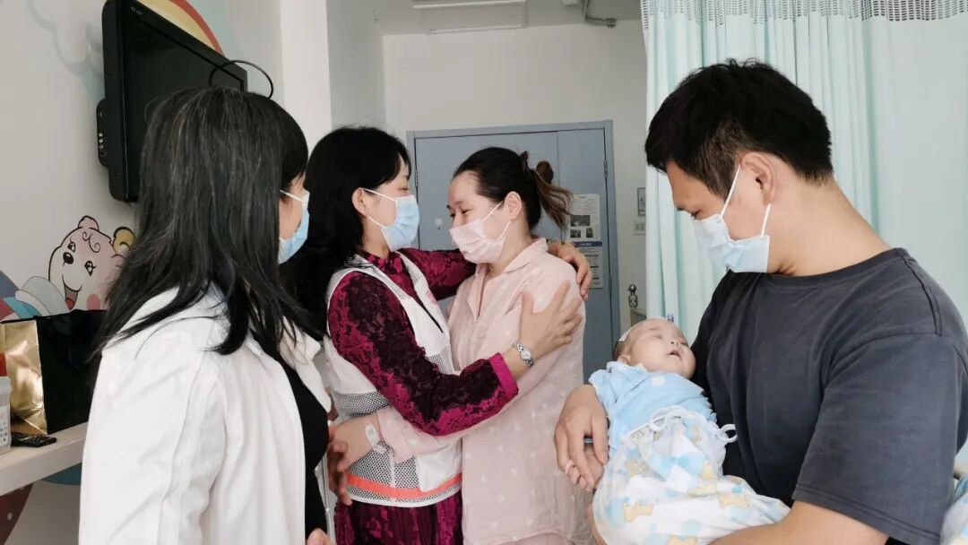 在妇儿中心,队员们见到了3个月大的小璇,小璇一家人来自潮汕地区。小璇住院已经一个多月了,在重症监护室20多天,近日转到普通病房,小璇父母放下心头大石,但仍然担忧幼儿的身体情况。
